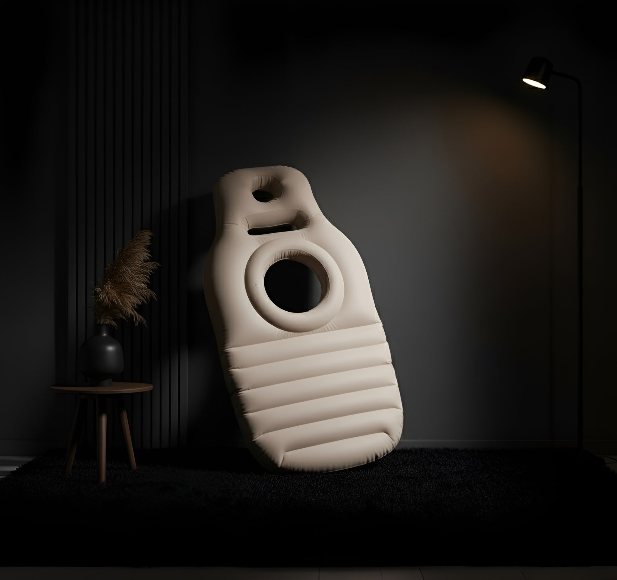 It inflates in seconds with a pump, stores away easily and wipes clean without any hassle. Honestly such a game-changer for comfort and relaxation. Highly recommend for anyone needing a little extra self-care.